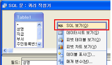 3. Äõ¸®ÀÛ¼º±â¿¡¼­ Å×ÀÌºí ¿· ºóÈ­¸é¿¡¼­ ¸¶¿ì½º¿À¸¥ÂÊ-SQL º¸±â¸¦ ´©¸¥´Ù.